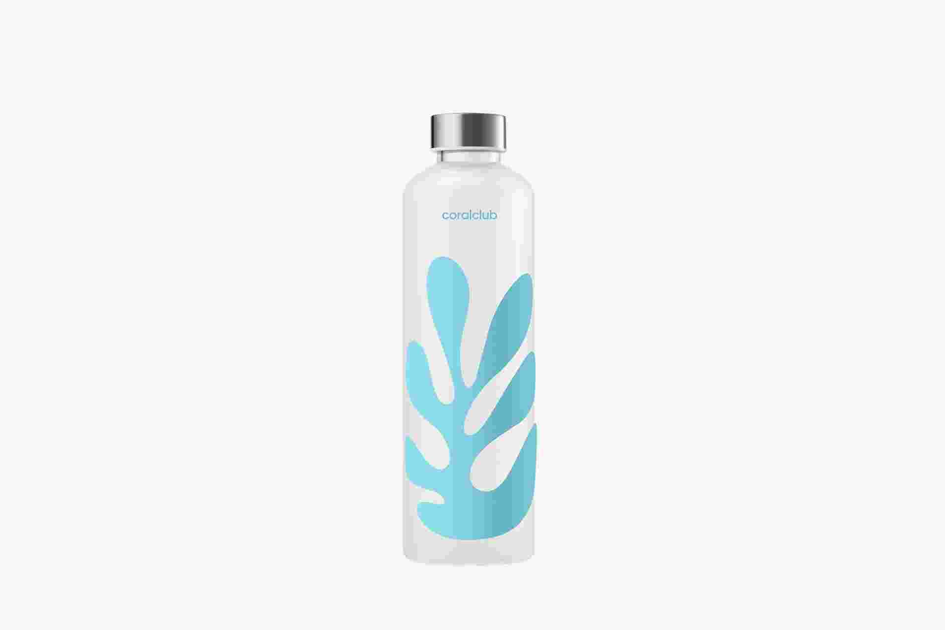 Butelka na wodę ze szkła borokrzemowego zaprojektowana specjalnie z okazji 25-lecia Coral Club.