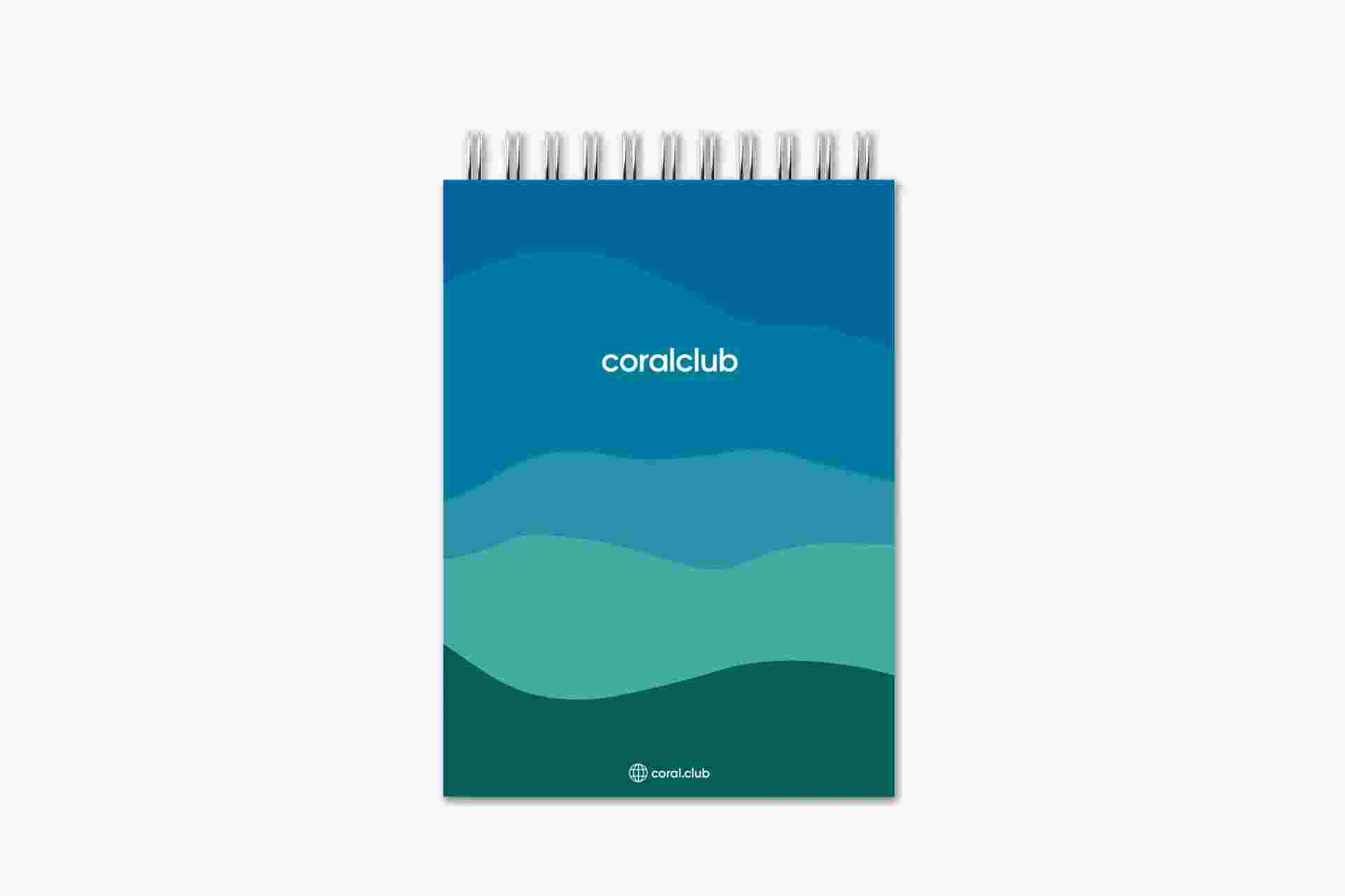 Notes z logo Coral Club w odcieniach niebieskiego - idealny na wydarzenia, szkolenia i spotkania.