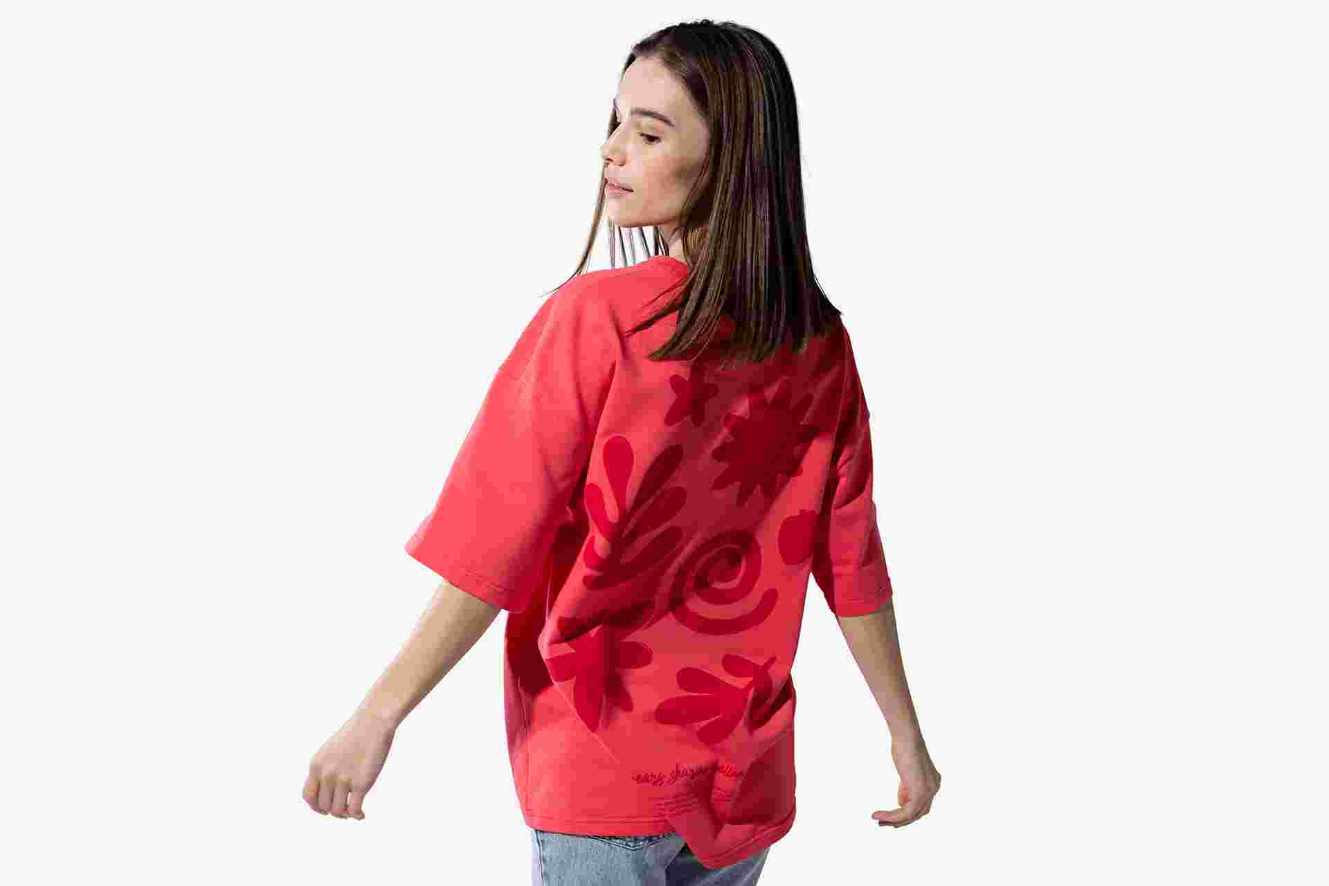 Kolorowy nadruk po obu stronach koszulki odzwierciedla nasze kluczowe źródła inspiracji - symbole natury, zdrowia i aktywnego trybu życia.